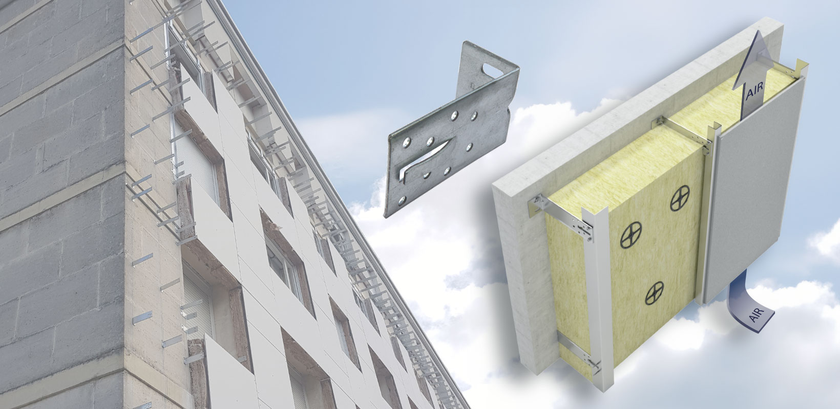 Les équerres ISOLCO 3000 P2 s’adaptent à différents types de parements : Fibres-ciment, HPL, terre-cuite, bois, céramique, pierres, métal et alliage, bardeaux bitumés, béton de granulats...